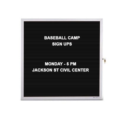 Most Indoor Enclosed Letter Board Display Cases can be ordered in either portrait or Landscape. Break-Resistant Clear Acrylic Window comes standard but depending on the letterboard size and style you select you have an option to order tamper resistant glass. Front cam locks to secure changeable letter boards are installed in 48 display case styles.