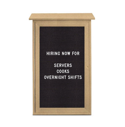 The 24" x 30" outdoor enclosed letter board single door features a solid continuous left-sided hinge allowing the outdoor information board to open and close with ease. A Front CAM Lock and Break Resistant Acrylic Window are included to protect the message display board.