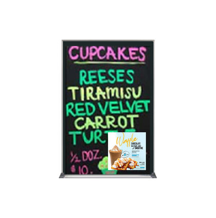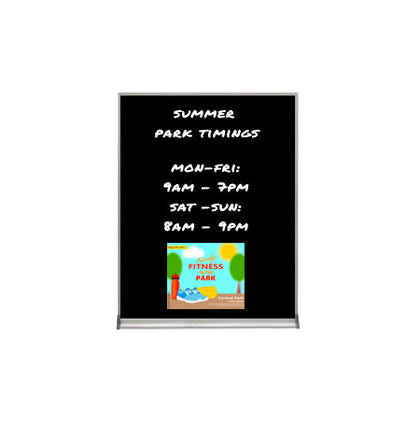 The advantages of choosing Magnetic Black Marker Board is the usability and durability it offers. These open face Marker Message Display Boards have a porcelain steel writing surface that’s considered to have the best quality over other types of dry erase black message boards. It’s made to work with wet erase florescent markers. Simply write on. When you’re ready to alter your message and or drawing, wipe off. There’s no ghosting residue.