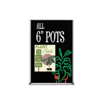 An aluminum sliver trim frame 1/2” wide borders the open face frame. At only 5/8” deep the black markerboard can be wall mounted, installed in a cabinet, placed onto an easel, leaned against a wall or other flat surface.