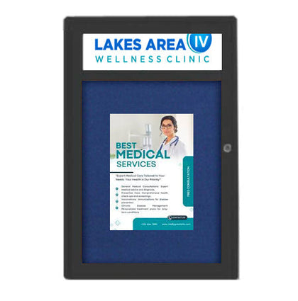 22 x 28 Indoor Enclosed Bulletin Board with Header and Light (Radius Edge)
