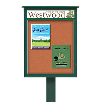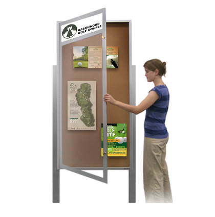 Everyone knows a good-looking bulletin board that catches people's eyes is the best way to get your printed materials and business signage noticed. Our freestanding aluminum framed cork boards are offered in four stylish finishes to fit a wide variety of outdoor decors: Satin Silver, Black, Bronze, and Satin Gold. These sleek finishes can further complement by adding one of our optional vinyl-covered bulletin boards, offered in five attractive colors of their own: Burgundy, Black, Barcelona Blue, Hunter Green, and Grey.