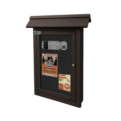 Maintenance-free and Eco-Friendly, the Recycled Plastic is made of Polypropylene. This material is extruded onto high-density plastic lumber and constructed into Faux Wood. So it looks like real wood, but unlike natural wood, this plastic lumber renders the outdoor information board impervious to Water, Chemicals, and Insects. Also, it will never rot, crack, Split, or Decay. A protective slanted rooftop helps keep rain and debris from the viewing area.