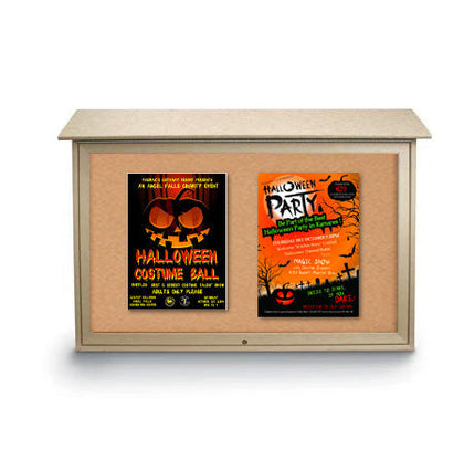 With a Natural Cork Bulletin Board interior, 3 3/4 Inch Display Case Depth, and maintenance-free, weather-resistant construction, this Eco-design 16x34 Mini Outdoor Message Center with Cork Board is built to display and help protect your announcements, maps, posters, signage, restaurant menus, and other important printed materials while withstanding the outside elements.