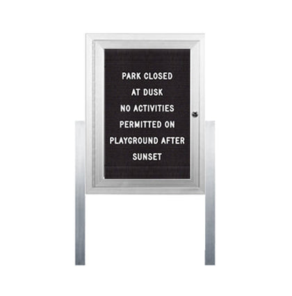 Outdoor Enclosed Letter Boards with Posts and LED Lights with Single Lockable Door in 7 Sizes Plus Custom