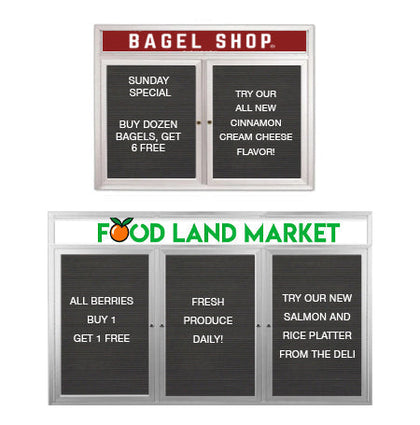 Outdoor Enclosed Letter Boards with Header and Radius Edges | Multiple Doors | 2 and 3 Door in 35+ Sizes