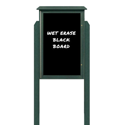 Outdoor Message Center 40" x 60" Magnetic Black Dry Erase Board with Posts (Single Door)