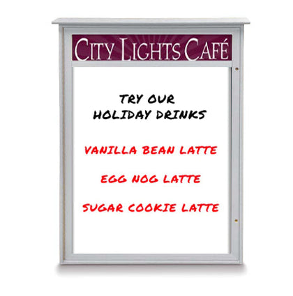 24" x 48" Outdoor Message Center Magnetic White Dry Erase Board with Header (Single Door)