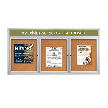 Enclosed Outdoor Bulletin Boards 96" x 36" with Message Header (3 DOOR)