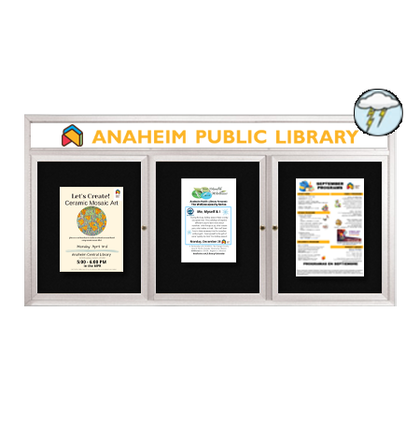Enclosed Outdoor Bulletin Boards 96" x 30" with Message Header (3 DOOR)