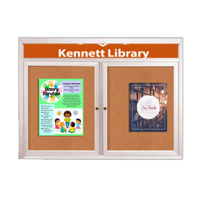 Enclosed Outdoor Bulletin Boards 84 x 36 with Header & Lights (Radius Edge) (2 DOORS)