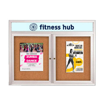 Enclosed Outdoor Bulletin Boards 60 x 24 with Message Header and Radius Edge (2 DOORS)