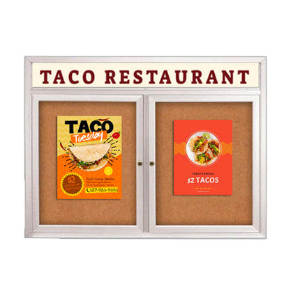 Enclosed Outdoor Bulletin Boards 40 x 50 with Message Header and Radius Edge (2 DOORS)