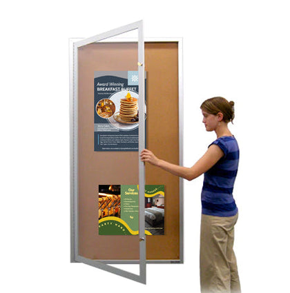 • Enclosed cork boards are great ways to bring attention to important information. Quickly change your messages with the swing open case. For indoor use, you can choose a variety of wood finishes and fabric cork coverings. We offer multiple metal frame and vinyl cork covering options when using outdoors.