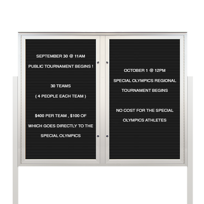When it comes to getting your announcements noticed, height can increase the number of viewers of your sign. Our outdoor message centers with posts help you display your notices at heights passersby will see, even in crowded outdoor areas. Many of our outdoor letter boards include posts in sizes up to 10ft. These free standing announcement boards are hard to miss, thanks to their tall heights. Our message centers with posts include letter boards with single or double posts so you can select a model that best fits your outdoor ground space. We also offer double sided message centers with posts. A double-sided free standing announcement board lets passersby read your information no matter which way they're facing.