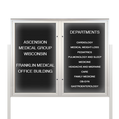 While an outdoor letter board with posts keeps your notices visible above crowds, wall mount signs are more practical in some applications. For example, a wall-mounted sign is great for posting directions, maps, schedules, or hours of operation outside of your establishment. Now visitors can read your updates before entering your store, community center, restaurant, visitor center, and more. Browse our collection of wall mount message centers, available with sliding doors or swing-open frames.