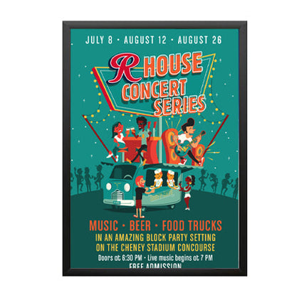 You can pick and choose how much space you want between the frame and the poster with our many sizes. Select a frame with larger measurements than your poster to add a colorful matboard and make your graphic stand out. If you’re unsure which frames will fit your sign, our customer service team will help you find a frame to best showcase your poster.