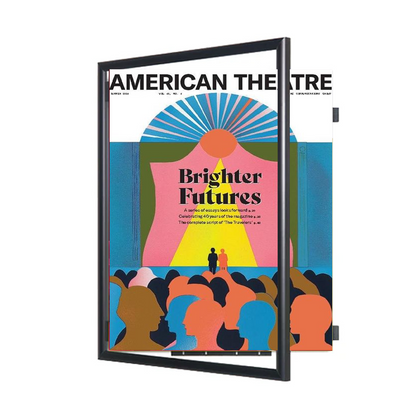 Our Patented SwingFrames. Like snap frames and slide-in frames, our patented SwingFrames make poster changes a breeze. Once your display frame is mounted, simply swing open the frame, attach a new advertisement, and then swing the frame shut. Of course, viewers will not be aware that your frame swings open! Thanks to hidden hinges and a sliding gravity lock, your display looks refined with no visible hardware distraction. We offer various frame widths, metal finishes, and wood finishes with colorful matboard border options that give buyers the chance to customize their hinged poster display frame. With numerous standard and custom frame profiles and finishes, you’re sure to find a combination that makes your poster stand out.