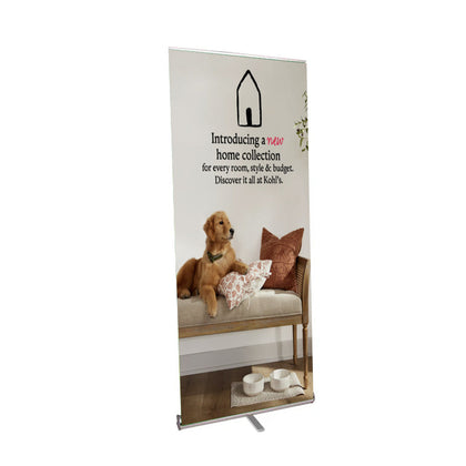 Pull-up, easy carry retractable banner stands are displayed in all kinds of interior environments. Including retail stores, pop-up stores, malls, trade shows, conferences, reception or waiting areas, hotels, museums, restaurants, theaters, showrooms, auto dealerships, and other locations that require a standout graphic message, ad, promotion, or announcement.