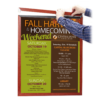 Whether your facility is small, mid-size, or large with multiple locations, a new building or a retrofit, our design team can provide numerous SwingFrame changeable visual display solutions tailored to your facility’s interior decor and budget. Our highly capable design staff has the experience to manage one custom design display or can initiate and deliver large scale visual display design projects.