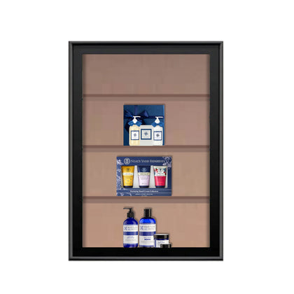 Each wall display case includes pre-drilled shelf clip holes so you can choose how close or how far apart you want to place the adjustable shelves. For shadow boxes larger than 48 inches, metal shelf standards are installed to provide more support. Depending on the size and orientation of your shadow box display case, choose from 1/4-inch and 3/8-inch glass shelves or 3/4-inch wooden shelves. Shadow boxes with shelves are great for displaying multiple themed objects like sports trophies or products in retail stores such as cosmetics, sunglasses, and watches.