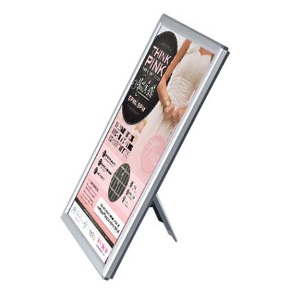 All four sides snap open. With your hand, flip up the aluminum frame sides for standard snap frames. After front-loading your graphic, snap-shut the metal display frame to get a tight, even grip on your posters and signs.