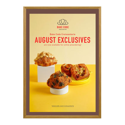 This front-loading aluminum poster snap frame has four mitered corners. It presents a classic picture frame style and comes in 5 finishes that most businesses and organizations buy. It's the best-selling of all the snap frame design types.