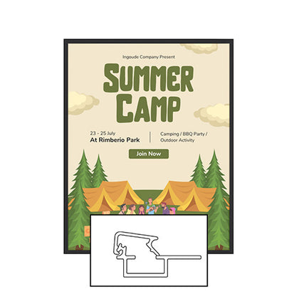 SwingSnap Snap Frame aluminum frame profiles come in numerous standard frame sizes. But with wide-ranging printed advertising and marketing signage material sizes used in all industries, you never know if a custom snap frame size is required. And if it is, our production team will make it to fit your graphic sheet size.