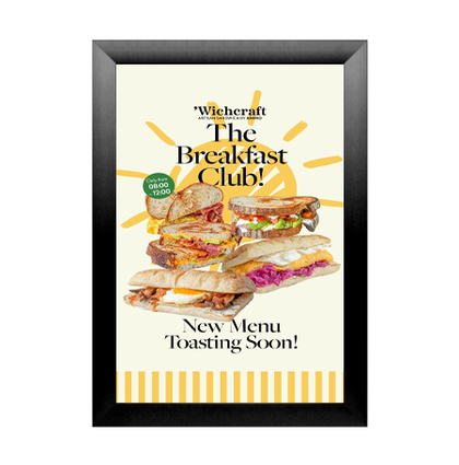 • Quick-Changing, all 4 frame rails snap-open for easy poster changes
