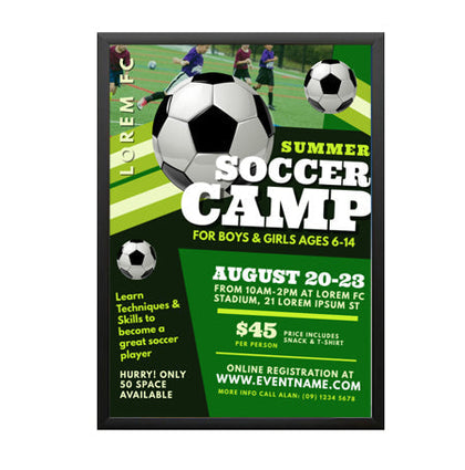 • Quick-Changing, all 4 frame rails snap-open for easy poster changes