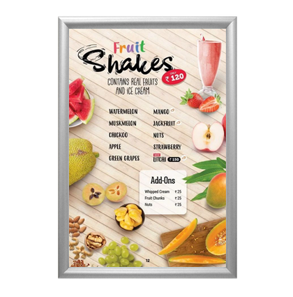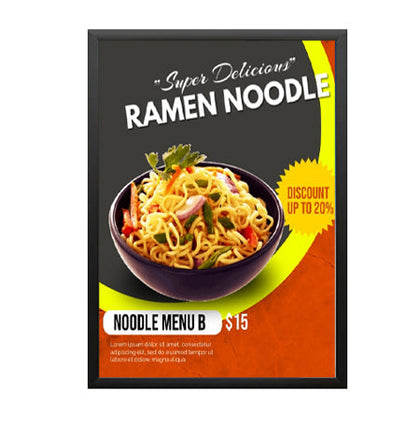 With easy snap poster frames from Displays4Sale, You can quickly change posters, signs, advertising, photography, menus, and other printed graphics sheets. When mounted to a wall, a cabinet, or other flat surfaces, snap open, place, or change your insert materials. Snap Shut. It's That Simple.