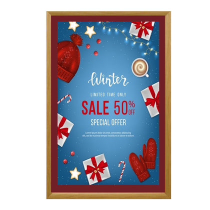 • 17x22 Quick-Changing, all 4 frame rails snap-open for easy poster changes