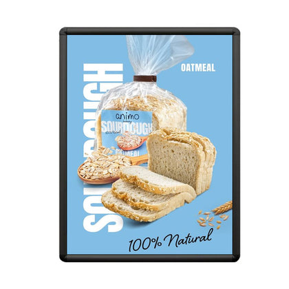 All four sides snap open. With your hand, flip up the aluminum frame sides for standard snap frames. After front-loading your graphic, snap-shut the metal display frame to get a tight, even grip on your posters and signs.