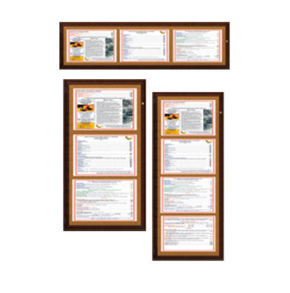 Designed to display 11x17 menus, these wall mount enclosed menu display cabinets feature a slim, 2" profile and a lockable door. This simple, attractive restaurant menu display case comes in three popular case finishes and thirteen menu box sizes to display up to nine 11” x17” landscape restaurant menu sheets.