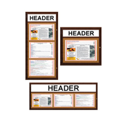 Our enclosed menu case with header panel, solid wood construction and classic mitered corners attracts the right kind of attention to your menus. Send us your header message when ordering, and your text will be printed in 3” all caps, black Helvetica font. 13 standard restaurant menu case sizes let you display up to nine 11”X17” landscape menus at once.