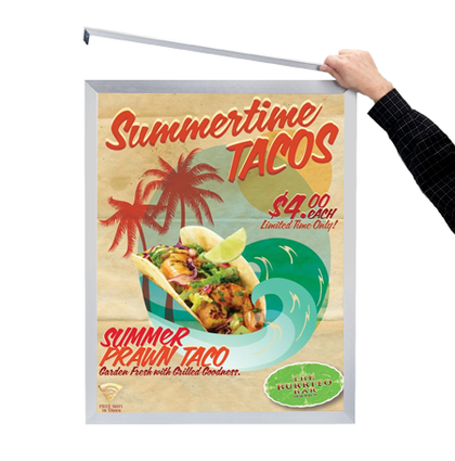 These changeable poster sign frames are a great choice for large volume adverting promotions and other signage projects with tight budgets. narrow, Wall hugging, 12 x 16 poster frames, easily mounts to walls, POP displays, cabinets and other flat surfaces.