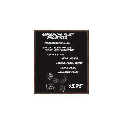 Black marker board has a handsome 1" wide wood frame border. The Open Face Black Marker Board is a great way to brainstorm, post messages, create announcements, or promote a product, service or event.