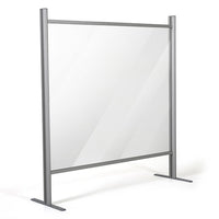 This durable clear plexiglass shield comes with an anodized silver aluminum frame, and the 0.16" thick acrylic panel can be adjusted to any desired position within the vertical metal profiles. The 11.81" wide feet provide stability in a variety of environments. Sneeze Guards can easily be wiped down.