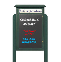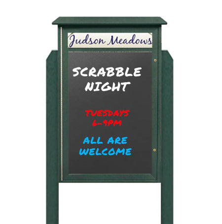 The Outdoor Standing Dry Erase Board cabinet is also impervious to water, insects and chemicals, making it perfect for numerous outdoor locations like University Campuses, School Grounds, Hiking Trails, Parks, Golf Courses, Boat Docking Areas, Restaurants plus many more outdoor locations in need of an outdoor enclosed bulletin board.