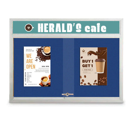 Need an indoor bulletin board to promote your messages and announcements? Our 60x48 Indoor Sliding Glass Enclosed Bulletin Board features a 1 inch wide aluminum radius edge profile, personalized message header and internal energy efficient lights.