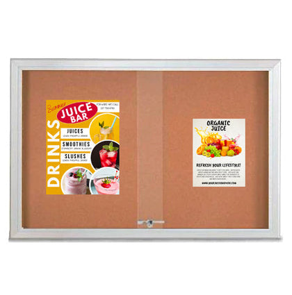 Indoor Enclosed Bulletin Cork Boards 72 x 24 with Sliding Glass Doors (with RADIUS EDGE)