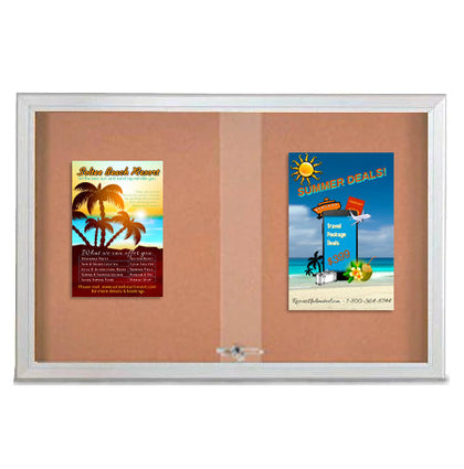 More than 72x36 Glass Bulletin Boards. We have it all; Large Outdoor Metal Framed Bulletin Board with Header, an Indoor Designer Wood Framed Cork Board with Lights, 1,2,3 and 4 door bulletin boards -- all types of custom cork boards, wall mount, free standing, enclosed, framed or frameless; call us for more details.