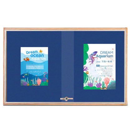 SwingCase wall display board has 2 sliding glass doors. With the 72" w x 36" h cabinet size and large tempered glass doors your postings have an unobstructed viewing area. That means you get to pin and view more messages, posters, ads, and other printed information than other enclosed message cork boards with typical metal or wood framed cabinet doors.