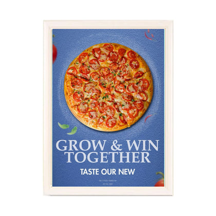 SwingFrame's patented wood poster display is designed with concealed hinges and gravity lock. This hides the fact that it swings open. After you wall mount the wood 8.5x14 poster frame, just Swing Open, Place and Swing Close to change your posters, signage and promotional advertising quickly.