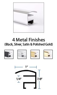 Choose from these popular metal frame finishes: Satin Black, Satin Silver, Satin Gold, Polished Gold