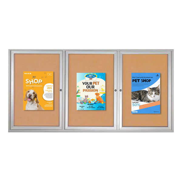 Display your messages and other important announcements securely in SwingCase 96" wide x 30" high landscape size triple door enclosed bulletin board.