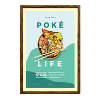 Our same popular SwingSnap poster snap frames with simulated wood wrap now are available with a decorative Mat Board Border. All four sides of the mitered faux wood snap frames 16x20 are spring-loaded to "snap-open". The wall mounted snap frame also described as clip frames or poster grip frames easily snaps down on the Matboard to secure your signage.