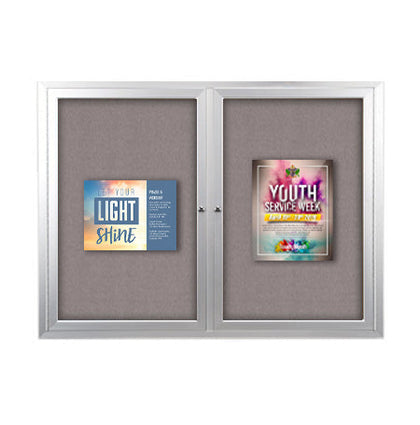 Each of the 2 doors have solid continuous hinges and is secured with a front metal door cam locks. The break-resistant Lexan polycarbonate window provides clear message viewing.