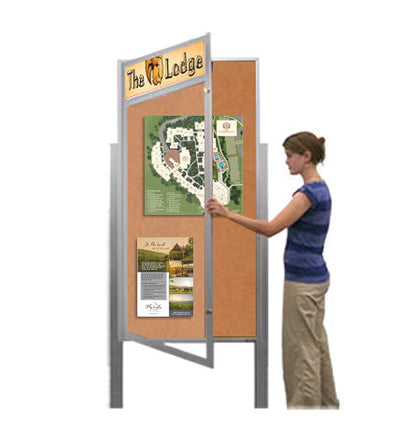 Other models include 1 Door, 2 Door and 4 Door outdoor bulletin boards with radius edges and mitered corners. Large Indoor enclosed bulletin boards; wood framed and metal framed wall display boards.