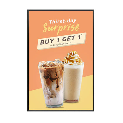If ordering our patented SwingFrame Poster Display, Slide-In Poster Frame, SwingSnap Snap Open Poster Display, or SwingStand Floor Poster Displays we offer the benefit of shipping your poster in our frame at time of order. This will reduce shipping costs and tracking numbers for your order.
